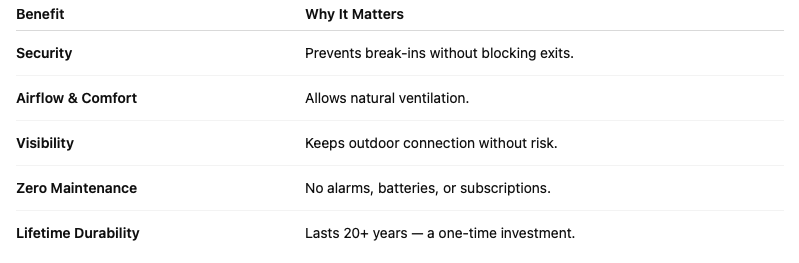 It’s about being able to open the door, breathe fresh air, and feel safe without needing an app, subscription, or constant maintenance.