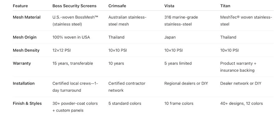 Not all “heavy-duty” security screens are equal. Boss Security Screens combines U.S.-woven mesh, professional-grade engineering, and hometown service to deliver protection—and peace of mind—you simply won’t get elsewhere.